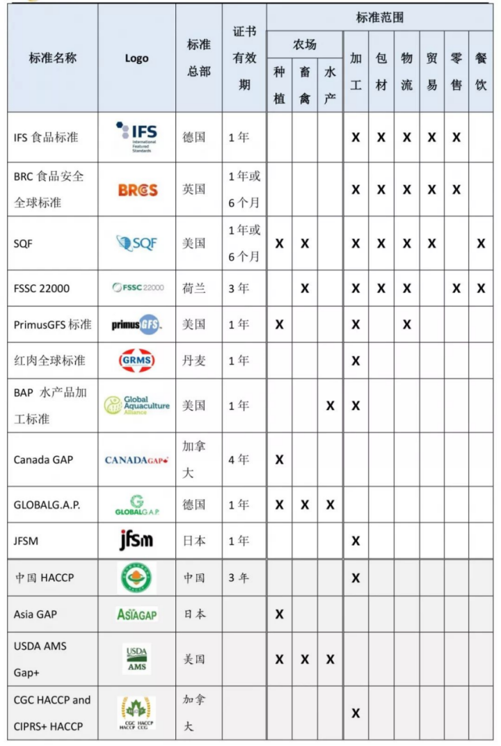 4.7 供货生产工厂须通过BRC/FSSC22000/SQF等GFSI体系内的认证。 认证列表如下。