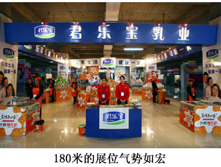 在博览会现场,新颖、大气的君乐宝乳业展区格外引人注目。整个展区以蓝白相间为主色调,代表了我公司纯净自然的产品品质与“健康一家人”的品牌理念。展区内云集了我公司在2010年主推的“拳头新品”,包括倍受市场追捧的每日活菌、复合红枣酸奶、五色谷养生牛奶等不同系列的创新产品,并以试饮活动、图片、文字、视频等形式讲解酸奶知识及产品知识,吸引了众多参观者的浓厚兴趣和驻足问询。