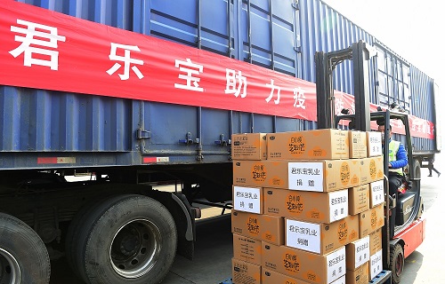 同时,在疫情严重的关键时期,君乐宝积极协调生产、质量、运输等各个环节,确保产品的价格稳定、质量安全和市场供应。并加大订货补货,发挥线上线下优势,畅通物流运输,强化从业人员安全防护,为疫情后勤保障打出漂亮一役。